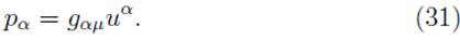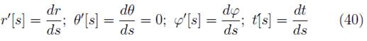 which depends on coordinates. For this condition, the worldline is straight and its tangent u α is parallel to the four momentum ρ μ [22].