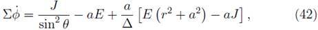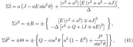 In the case of the Kerr metric, one has two Killing vectors, owing to its stationary and axisymmetric nature. In consequence, Eq. (18) yields two constants of motion: the total energy E and the component z of the angular momentum J [51].