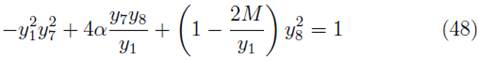 We solve the system of equations (47) and (48) for the case of a circular orbit and obtain the values of y7 = Mu 3 and y 8 = u 4 in the equatorial plane.