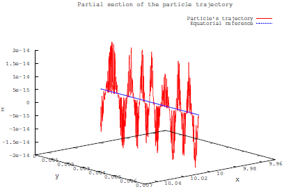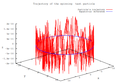 FIGURE 2:: The spinning test particle with the Pirani condition has a helical trajectory (geometrized units)