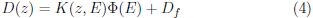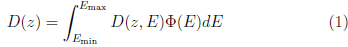 donde D(z) es la distribución o porcentaje de dosis en profundidad (PDP) medida en el eje central y D(z,E) es la matriz de distribuciones de dosis en profundidad del eje central para haces monoenergéticos de energía E variando entre la energía mínima E min y la energía maxima del haz E max.