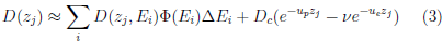 donde i = [1, 2, ...n] es el i-esimo haz monoenergetico de energía E i; j = [1, 2, ...m] es la j-esima caja en que el vector profundidad es seccionada ubicada a la profundidad z j y ∆E i es el i-esimo intervalo de energía entre dos haces monoenergéticos consecutivos E i y E i+1.