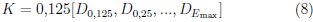 Regularmente, el valor de Emin coincide con el de ΔΕ, cuyo valor fue establecido en 0,125 MeV, de modo que,