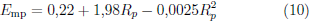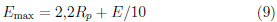 El valor de Emax es aproximado como siendo una función del valor de la energía nominal de haz, Ε, y del rango práctico de D, Rp, así,