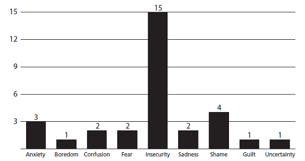 Among the negative emotions, insecurity ranks first, being mentioned in almost all the answers: