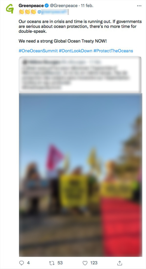Figure 3: Greenpeace’s Tweet About Ocean Protection