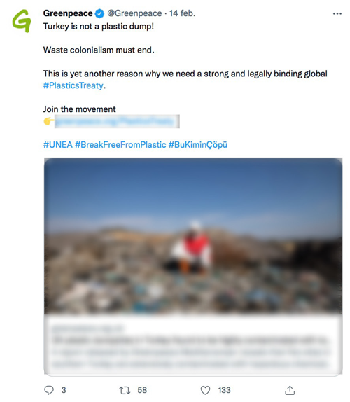 Figure 4: Greenpeace’s Tweet About Plastic Dumpsites
