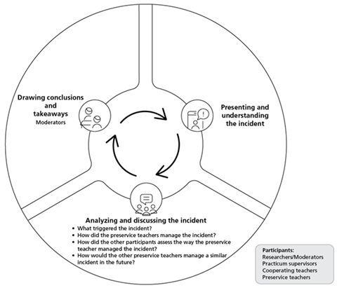 In sum, peer support groups and other equivalent alternatives appear to have proved effective in supporting teachers’ professional development. Thus, the current study relies on preservice teachers’ own documented experiences, in the form of classroom incidents derived from their practicum, as the primary input for developing peer support sessions with a focus on enhancing participants’ classroom management skills. The strategy at hand challenges the traditional practicum supervision experiences and encourages preservice and in-service teachers to become reflective practitioners who contribute to developing more effective classroom management abilities.