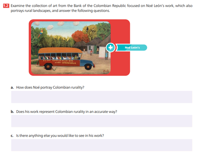 Similarly, Activity 2 explores a Colombian artist who also focused his work on rurality. This is followed by a series of reflective questions that carefully examine the various ways rurality has been understood and represented (see Figure 4). These two activities locate learners in the critical issue of rurality and start to offer plural possibilities to view it.
