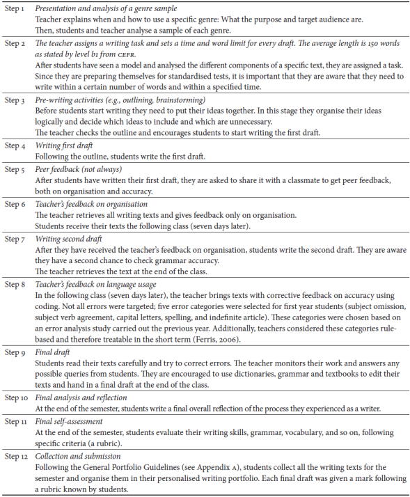 The writing portfolio procedure is summarised in Figure 1. However, a detailed description of the whole procedure is found in Table 1.