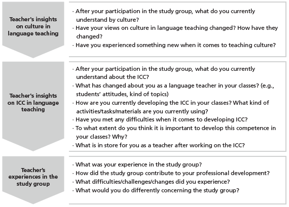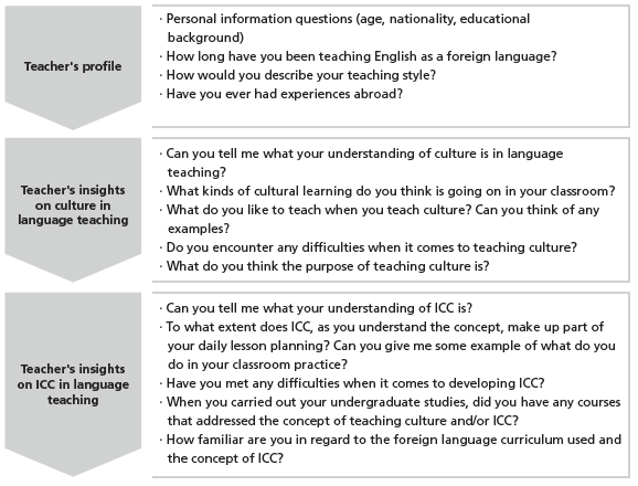 Lastly, leading questions were used to create a reflective dialectical space for discussions around the basis of ICC in ELT. These discussions allowed participants to share, discuss, and reflect on their own experiences when teaching culture, the kind of approaches used, their encounters with difficult situations when teaching them, and the connection between both language and culture in their classes.