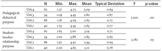 In the first place, for the use of Spanish for pedagogical-didactic purposes, Uni.4 was significantly superior to Uni.2 and Uni.1 but not to Uni.3.