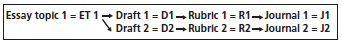 In order to systematize the data, we used the following codification: The participants were codified assigning the letter S and a number from 1 to 15 and the three cycles are represented as C and the corresponding number (see Figure 2). As students worked on a topic essay per term, every paper was coded as ET and numbers 1, 2, and 3. Besides, the students wrote two versions of every essay; so these drafts were coded with letter D and numbers 1 and 2. Participants’ rubrics and journals were coded as R1 and R2 and J1 and J2 since they worked on a rubric and journal per draft.