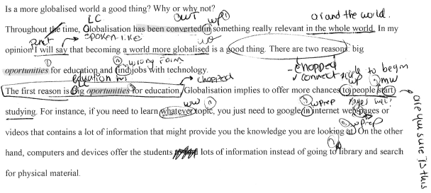 Self-correction, after having pointed out the mistakes, it’s a great way of learning how to write properly. (S12, J2, C3)