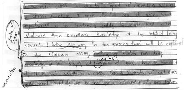 Figure 6: Students’ Extract With Their Teacher’s Correction (Essay 3, S11, Draft 1, Cycle 2)