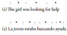 To help participants focus on the analysis and use of suprasegmental features, they were first made aware of the rhythmic differences between their native language (Spanish) and the language of instruction (English). They realized Spanish is a syllable-timed language, in which all syllables have equal length, while English is stress-timed, with equal intervals between stressed syllables (Abercrombie, 1967; Celce-Murcia et al., 2010). Accordingly, we used mark-up as in the following example to indicate differences between the rhythms of both languages.
