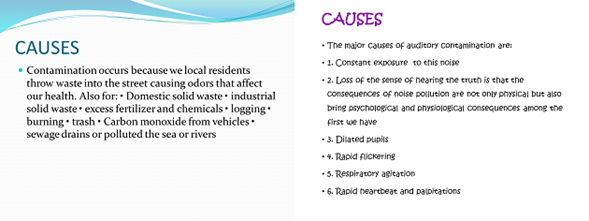 (11) Student 2: Causes: driving a car, flying an airplane, greenhouse, contamination.