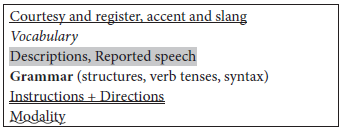 Then, the fragments selected (24 in total, as can be seen in Table 4 in the Findings section) were analysed. This entailed transcribing the corresponding script and highlighting different language elements (such as vocabulary, grammatical structures, and syntax, among others) that would be suitable for the academic year I was focusing on. A coding system was used on the scripts (see Figure 1) to highlight the main linguistic features that should be taught in the fourth year of secondary education. This could also make it easier for the learners to notice certain elements, if they also work with the scripts and not just with the audiovisual fragments.