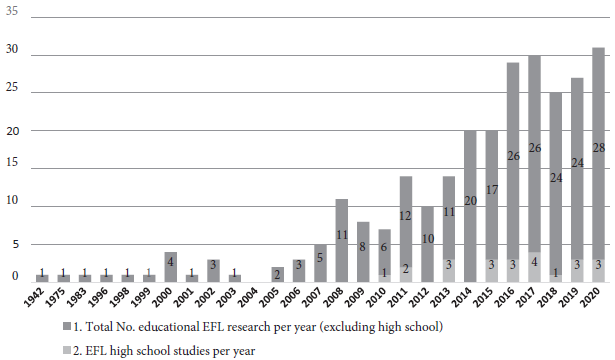 Research on high-school EFL education is recent (2010-2020) and scant.