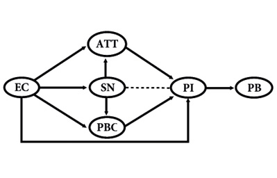 Extended theory of planned behavior (ETPB) (Paul et al., 2016). Although TPB presents a vast amount of empirical evidence backed by diverse fields and areas (Ajzen, 2006), for Paul et al. (2016) the context where potential ecological consumers are located (defined by factors such as country and social group) can condition the voluntary control over behaviors. Thus, incorporating to the model the environmental concern (EC) as a determining factor provides a better understanding of green products purchase intention in developing countries (Paul et al., 2016). EC is defined as the set of people’s values, feelings, and beliefs for the environment (and its socio-natural assemblage), their emerging problems, and their individual and collective willingness to solve them (López-Miguens et al., 2014) (Figure 3). Considering the role that context can have over ecological consumption, it is likely that consumers in developing countries do not have or perceive a voluntary control over decisions related to green products purchase. Therefore, the applications of this type of models should be validated case to case (Paul et al., 2016).