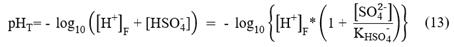 Where [H+]F is the concentration of free hydrogen ions, that is, the concentration of hydrogen ions that only form complexes with water.