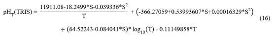 Where S is the salinity, T is the temperature (K) and pHT(TRIS) it is the pHT of the TRIS buffer.