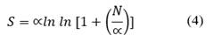 Where: S is Wealth, is ∝ Fisher's Alpha and N is the number of individuals in the sample.