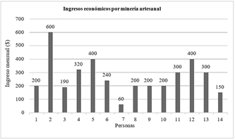 Figura 14: Ingresos económicos mensuales por minería artesanal.