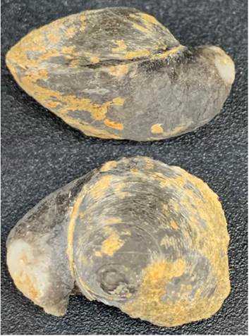 Figure 4: Corporal biogenic production (bioliths). Exogyra squamata inequivalve (lateral view and life position, left; dorsal view, right). Base of the Churuvita Formation (Cenomanian), in the stratigraphic section of Sáchica Town-Samaca bridge road, Colombia.