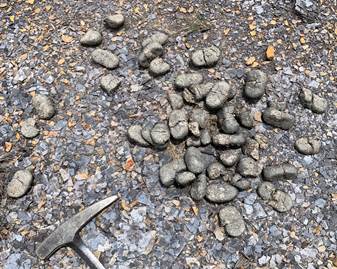 Figure 5: Biodeposition materials of depositional grapes of ovoid excrement (coprolites) of Equus ferus caballus (horse). Examples of fossilized grapes of coprolites are presented by different authors [28,53,59], among others.