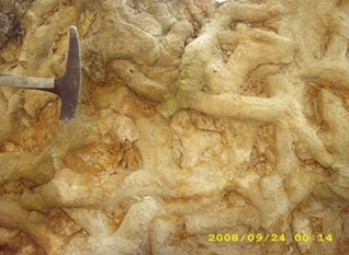 Figure 6: Thalassinoids, horizontal ramified to T-branched box-works, mazes, and shafts, unlined and unornamented. Arenisca Dura Formation, Upper Cretaceous, Iza, Colombia.