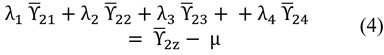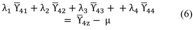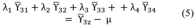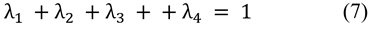 El Sistema para determinar λ1, λ2, λ3, λ4, se escribe como se muestra en las Ec. (3) - (8):