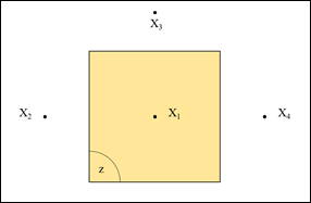 Como ejemplo de la dinámica del Kriging de bloques, tenemos una unidad de minado como el bloque de la Fig. 6, la cual está siendo influenciada por 4 muestras (muestras de canal o perforaciones).