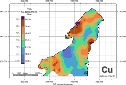 El modelamiento geoestadístico por medio de simulación condicionada por bandas rotantes es una herramienta que, junto a los análisis geoquímicos y estudios geofísicos, resultan ser de gran utilidad a la hora de definir con soporte científico anomalías geoquímicas de elementos vectores en etapas tempranas de exploración regional de depósitos minerales tipo pórfido de Cu-Mo.