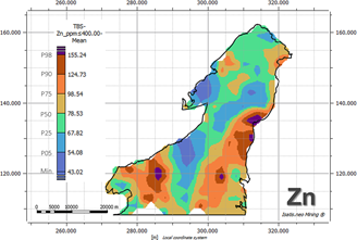 Junto con la simulación geoestadística se utilizó la información disponible de geoquímica, geología a nivel regional, y de alteraciones hidrotermales para el caso puntual del depósito mineral de Mocoa en los resultados del modelamiento geoestadístico, en la identificación de anomalías.