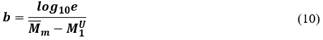 El valor observado b se estima mediante el método de máxima verosimilitud de Aki-Utsu (1965).