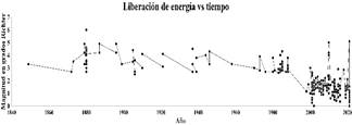 Figura 4: Evolución temporal de la sismicidad en el tiempo Escala 1: 5 000 000.