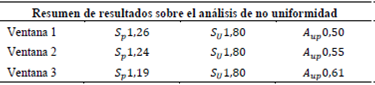 Hacia la ventana 3 ocurre un notable incremento en el valor de no uniformidad para el sistema (Tabla 3), este valor va a la par del incremento en la frecuencia de ocurrencia sísmica y de la disminución de la liberación de energía (Fig. 5). Estos resultados son coherentes con otros trabajos en la temática realizados en diversas regiones sísmicas del mundo [8], apoyando la posible ocurrencia de un sismo de elevadas magnitudes.