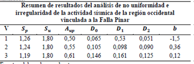 Los análisis de irregularidad y no uniformidad mostraron que la sismicidad en el sector analizado corresponde a un único régimen tectónico de carácter regional, asociado generalmente a la Falla Pinar.