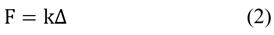 La fuerza aplicada a sistemas elásticos está dada por eq. (2), donde F es la fuerza elástica, k es la rigidez y ∆ el desplazamiento.