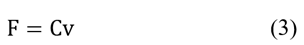 La fuerza amortiguadora del movimiento eq. (3) donde F es la fuerza aplicada, C es el coeficiente de amortiguamiento y v la velocidad.