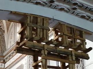 Después del sismo el arco fue apuntalado para evitar una mayor deformación, mientras las autoridades competentes decidían qué tipo de materiales utilizarían para la restauración, de tal manera, que fueran compatibles con los originales sin alterar sus valores intrínsecos.