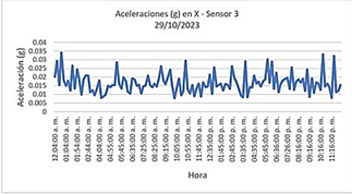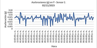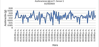 Los sensores también registraron vibración, entendiéndose como la vibración de un sistema o estructura, que puede ser causada por una perturbación instantánea y ajena a toda excitación permanente, en estas condiciones el sistema vibra por su estado natural, o pueden existir fuerzas perturbadoras, que lo hagan vibrar, por ejemplo, el ruido o vibración ambiental proveniente del tráfico vehicular, oleaje, etc.