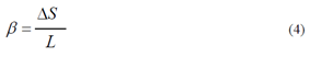 La distorsión angular (β) es una deformación relativa, producida por los asentamientos diferenciales, contiene elementos de la flecha relativa, inclinación, sus valores se dan en radianes y de acuerdo con [10], se calcula mediante la expresión: