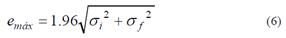 Precisión, donde el error de determinación (emáx) de las coordenadas debe ser menor o igual a un cuarto de la deformación total máxima esperada (emáx ≤1/4 Dt). En los estudios de la deformación [10] calcula el error de máximo por: