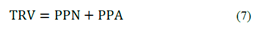 Total de pérdidas de rendimiento y velocidad (TRV) (ec. 7): Se expresa en tiempo y se definen como la sumatoria de las pérdidas de producción normal y las pérdidas de producción anormal.
