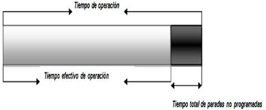 Para obtener la productividad real de los equipos se parte de la estimación del tiempo total en el que teóricamente estos deberían funcionar, estos tiempos se describen en la Fig. 1.