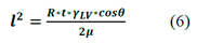 Donde R es el radio promedio de poro; l la altura del fluido alcanzado en su ascenso en un tiempo t, y γLV es la tensión interfacial agua-aire (72,7 mN/m).