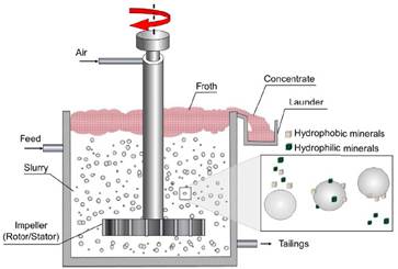 La flotación espumante es un proceso de separación fisicoquímica compleja, en el cual se estudian las propiedades superficiales de los minerales y la interacción de éstas con el agua, con el propósito de ser aprovechadas para la recuperación de un mineral de interés [7].