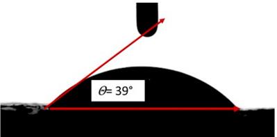 Figura 5: Ángulo de contacto de cuarzo proveniente de Roca fosfórica del Tolima (θ = 39°)